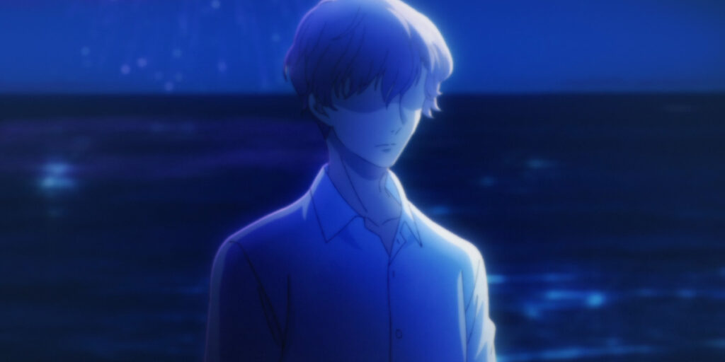 With Shin caught up in an emergency at the hospital, Mizuho ends up at the fireworks alone. They bring back memories of the 2020 fireworks she was supposed to watch with Kizuki. When she hears a little bell like the one on the keychain she once gave Kizuki, she looks around, expecting to see him. Instead, she sees a little kid walking by with his dad. Turning her attention back to the fireworks, she scolds herself for thinking it’s him. As she lifts her gaze across the crowd, there he is. Kizuki.